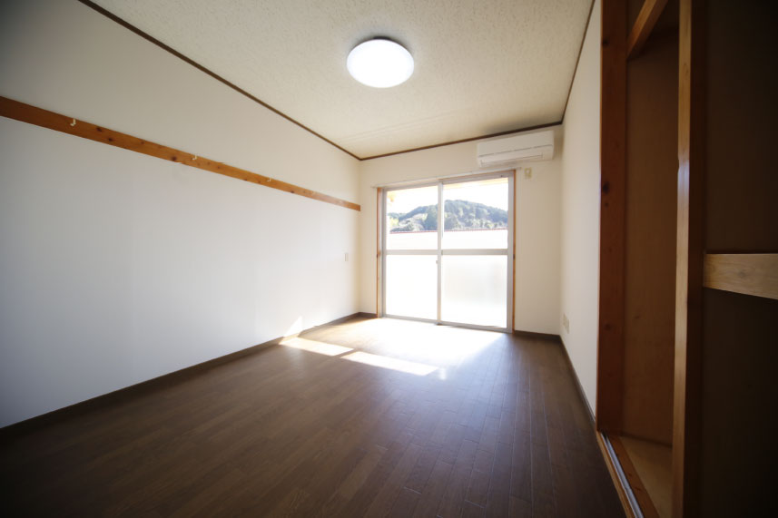 居室は全室2DK、日当たり良好、LED照明・エアコン・IH調理器等完備しております。また、各部屋毎に独立したWi-Fiサービスと宿舎敷地への不審者・不審車両の出入りを防犯カメラで24H遠隔監視しております。